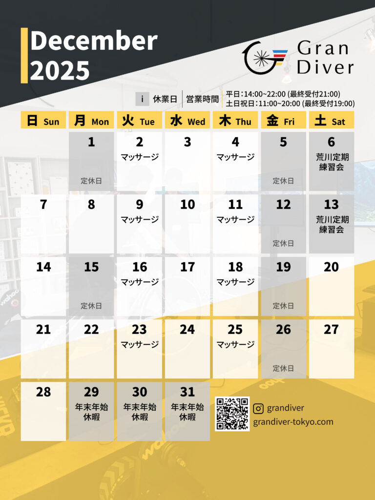 GranDiver 12月スケジュールと年末のお休み